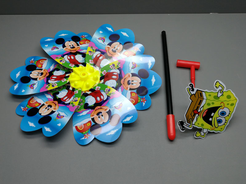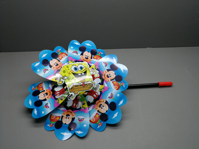 傳統玩具笑臉迪樂(lè )園動(dòng)漫卡通立體風(fēng)車(chē)戶(hù)外玩具卡通圖案旋轉風(fēng)車(chē)